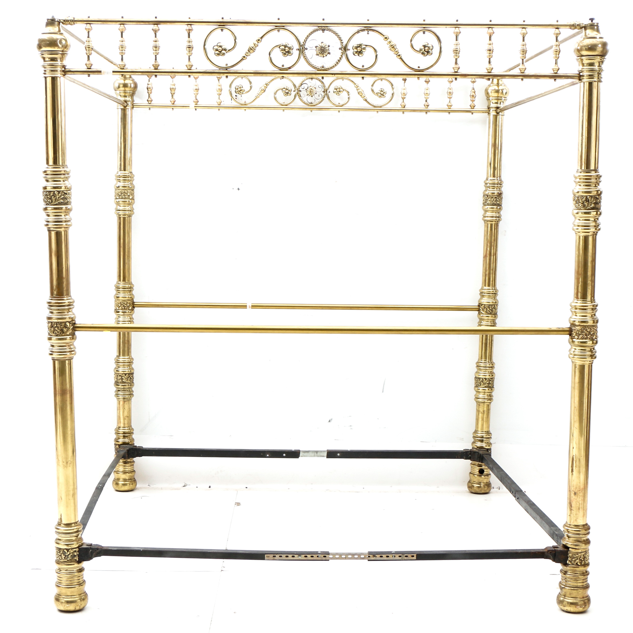 Victorian Brass Canopy Bed Frame Extended to King Size ... from ebth-com-production.imgix.net Massive thomasville kingsize flame mahogany chippendale canopy poster bed only. Ornate fabric is often draped between the posts and a solid swathe of cloth may create a ceiling, or canopy directly over the bed. Have a question about caledonian victorian inspired luxury antique white cal king poster canopy bedroom set?our professional product specialists are ready and available to help answer your questions quickly. 4.7 out of 5 stars. Our wide selection of antique king bed frames will surely satisfy your individual predilections. The canopy bed is a sleek and modern bed with a dramatic presence that will be sure to become the centerpiece of your bedroom. The uniquely curved shape of canopy truly makes this bed stand out. While it used to be commonplace to dress a victorian canopy bed's canopy in gauzy textiles, these days most designers will encourage you to keep the posters bare.