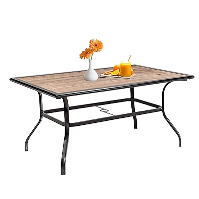 By noble house (12) 48 in. Pax poly aluminum 70''w x 30''d rectangular dining table with umbrella hole. Woven gray teak 63'' wide round dining table. Outdoor table outdoor dining set footer yes! Will you use the dining set during hottest hours of the day? The table top features a beautiful stone finish and the chairs include a mesh back and seat rest. Made from 600d fade resistant polyester, the best fabric out there for outdoor use, this cover is rugged and tear resistant. Woodard $523.90 $806.00 free shipping + more options. There is a 2 hole for umbrella in middle of table, lid (wooden cap) provided to cover hole when umbrella not in use. Send me exclusive offers, unique gift ideas, and personalized tips for shopping and selling on etsy. Find the perfect patio furniture & backyard decor at hayneedle, where you can buy online while you explore our designs and curated looks for tips, ideas & inspiration to help you along the way. Shop our best selection of outdoor dining tables with umbrella hole to reflect your style and inspire your outdoor space. Pair your dining set with one of these patio accessories and, voila!